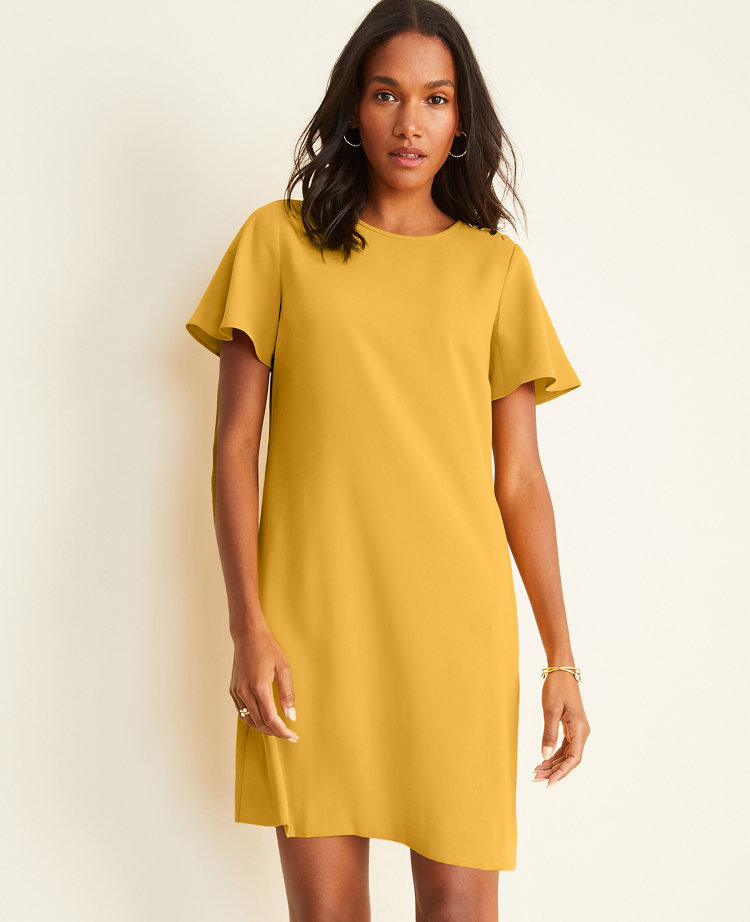 Ann Taylor Shoulder Button Flutter Sleeve T Shirt Dress In Yellow Modesens